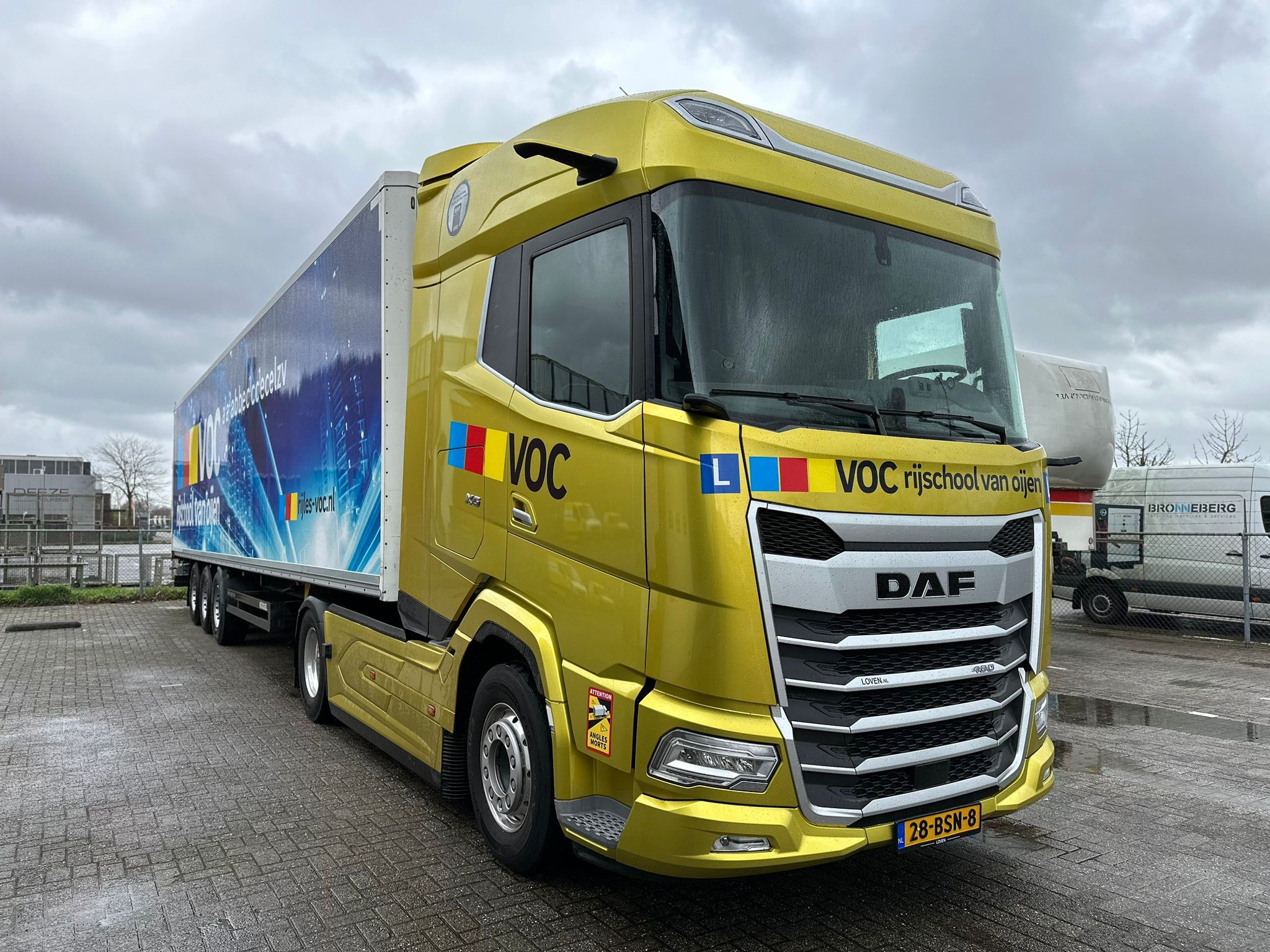 Voor de vrachtwagencombinatieopleiding (CE) met Trekker - Oplegger maken wij gebruik van een DAF XG automaat en een gesloten 3-assige oplegger.